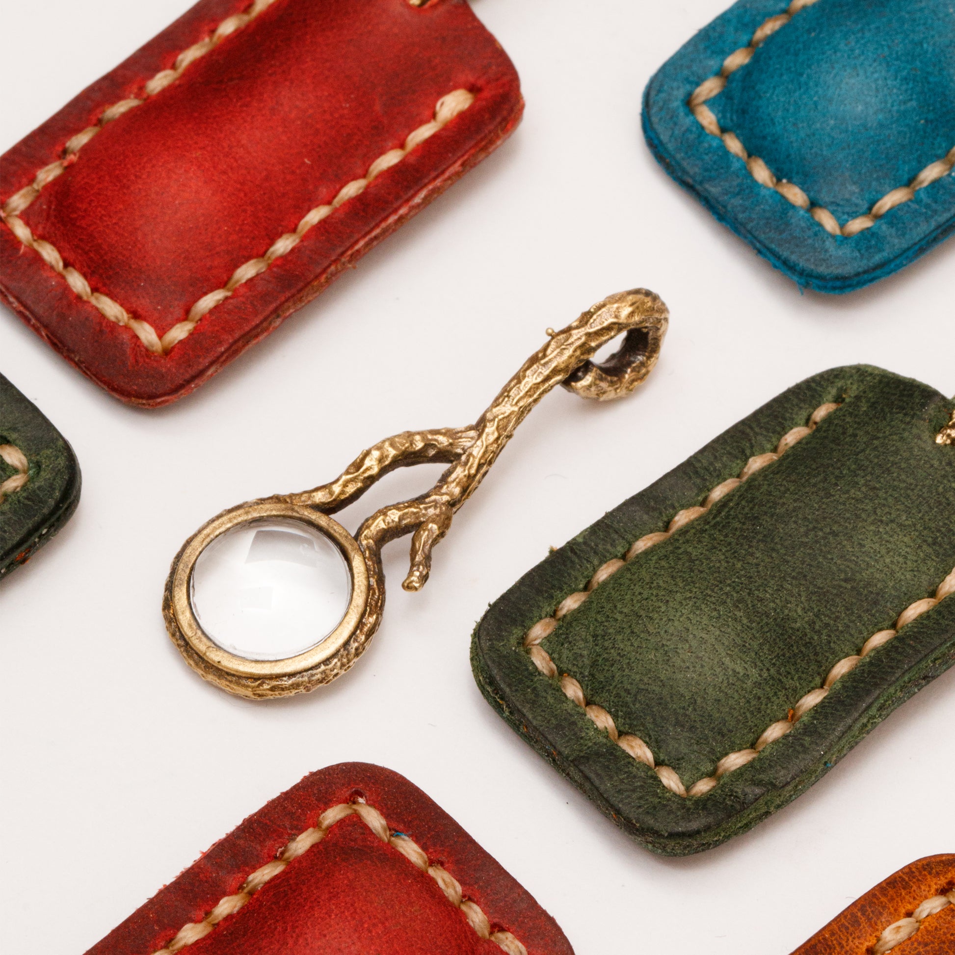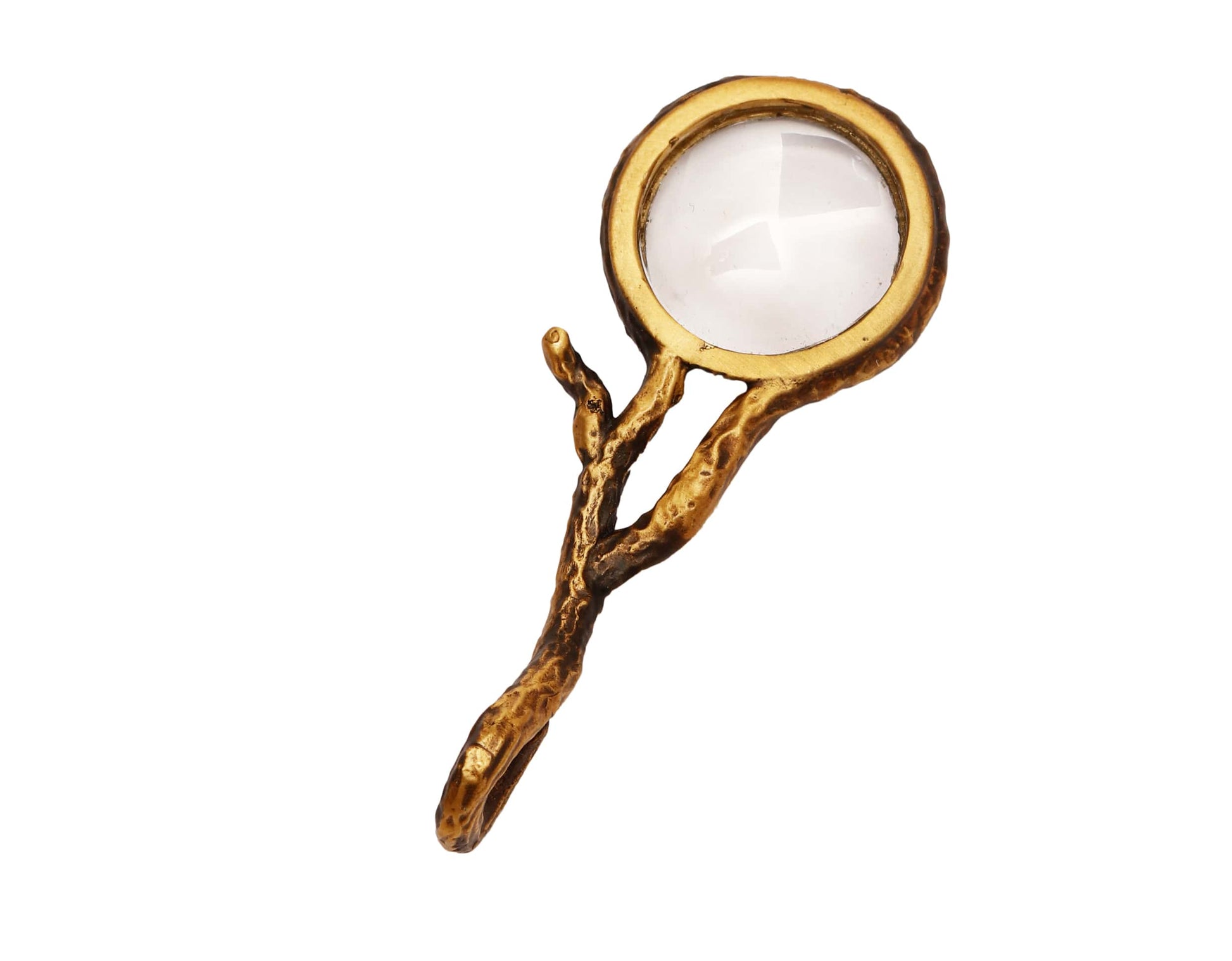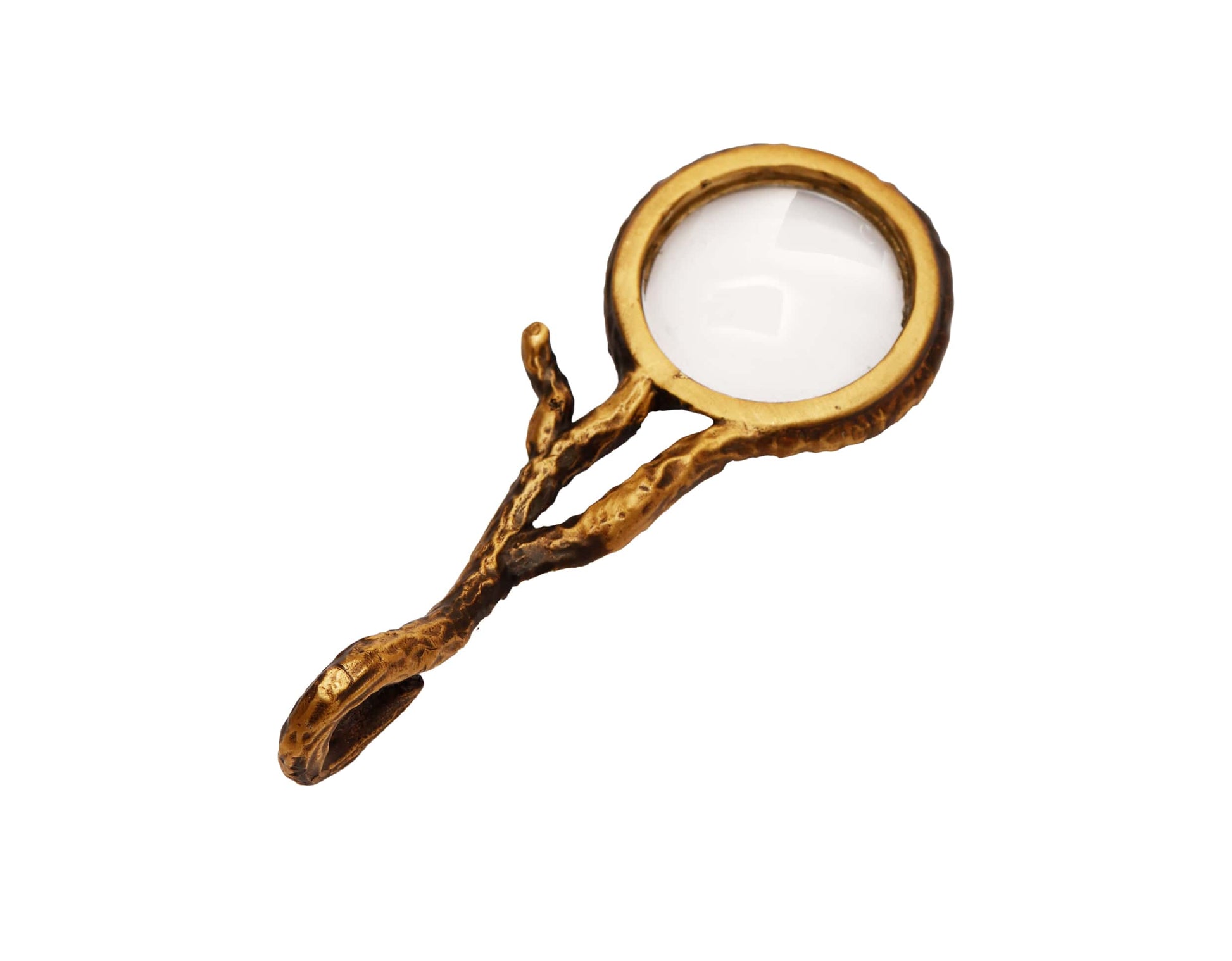 Kalp kutu içinde bulunan minyatür büyütecin büyük versiyonu olarak, benzer şekilde ağaç dalı formunda dokulu tasarladık. Deri kılıfıyla gönderilmektedir.