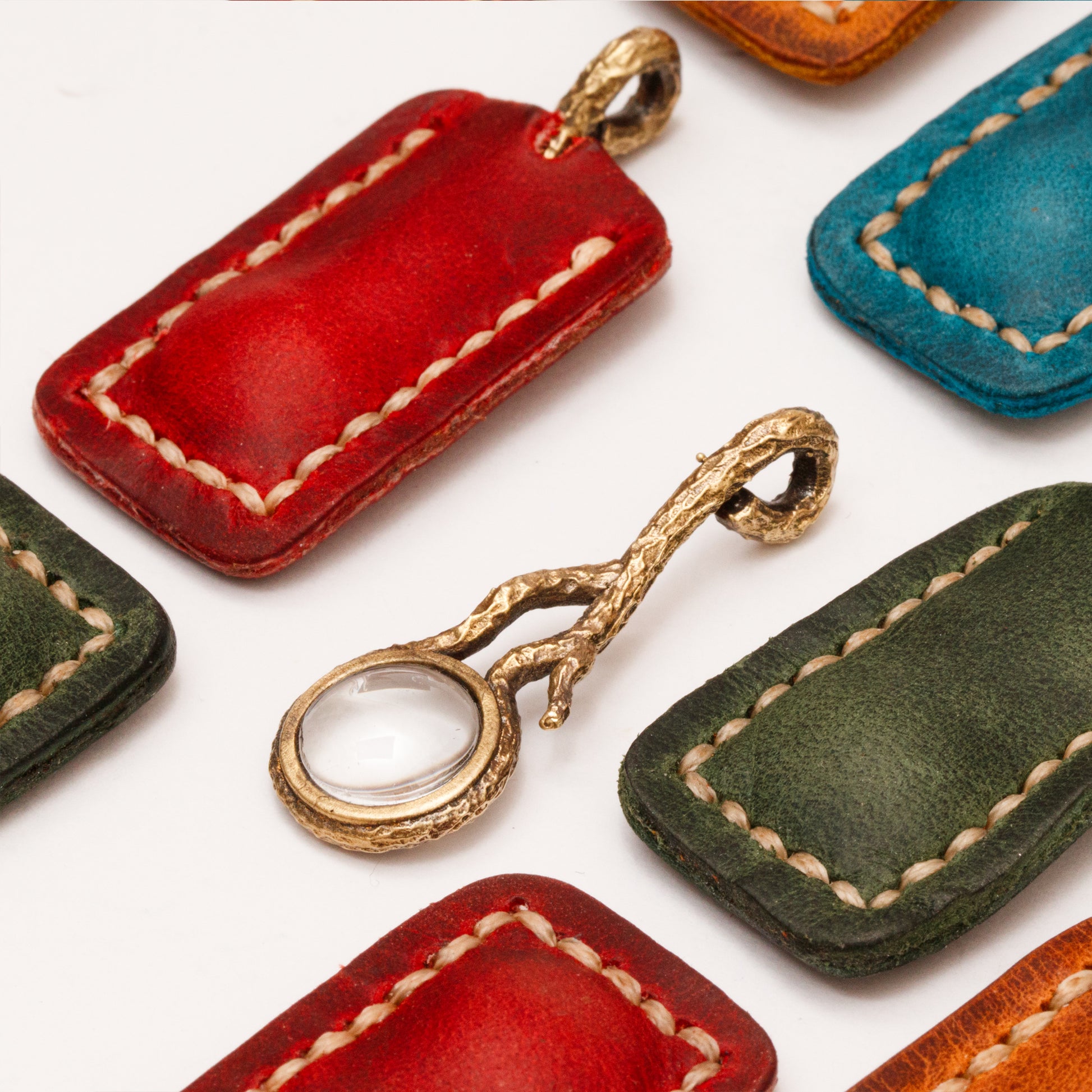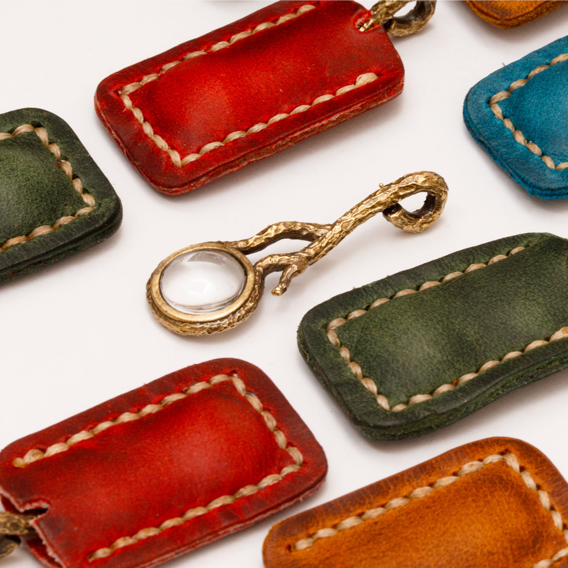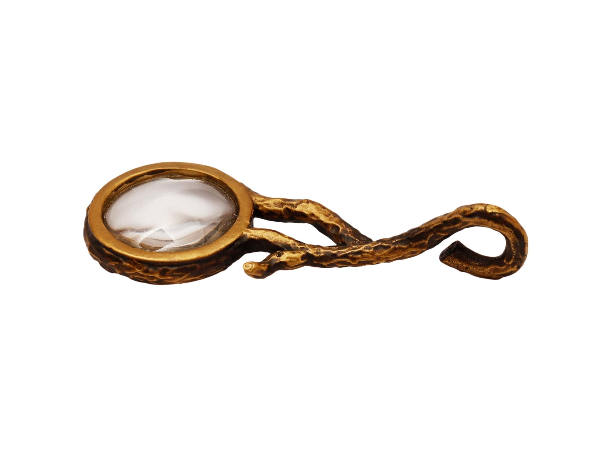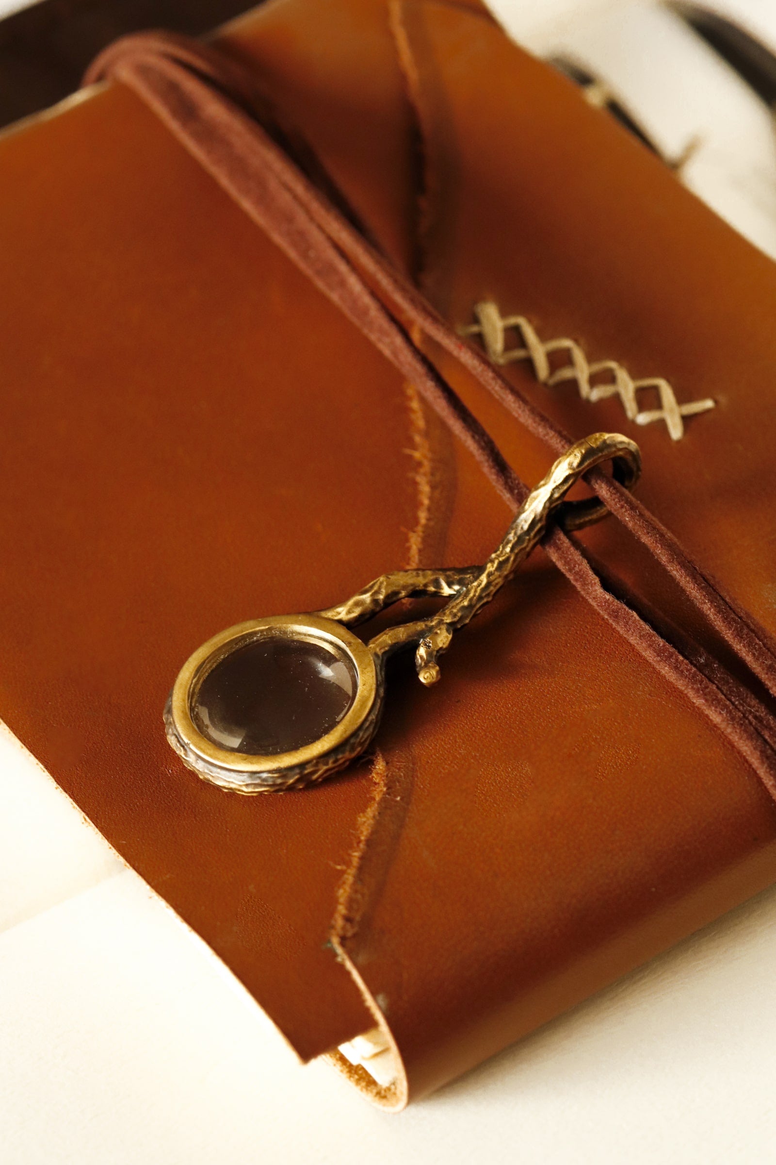 Kalp kutu içinde bulunan minyatür büyütecin büyük versiyonu olarak, benzer şekilde ağaç dalı formunda dokulu tasarladık. Deri kılıfıyla gönderilmektedir.