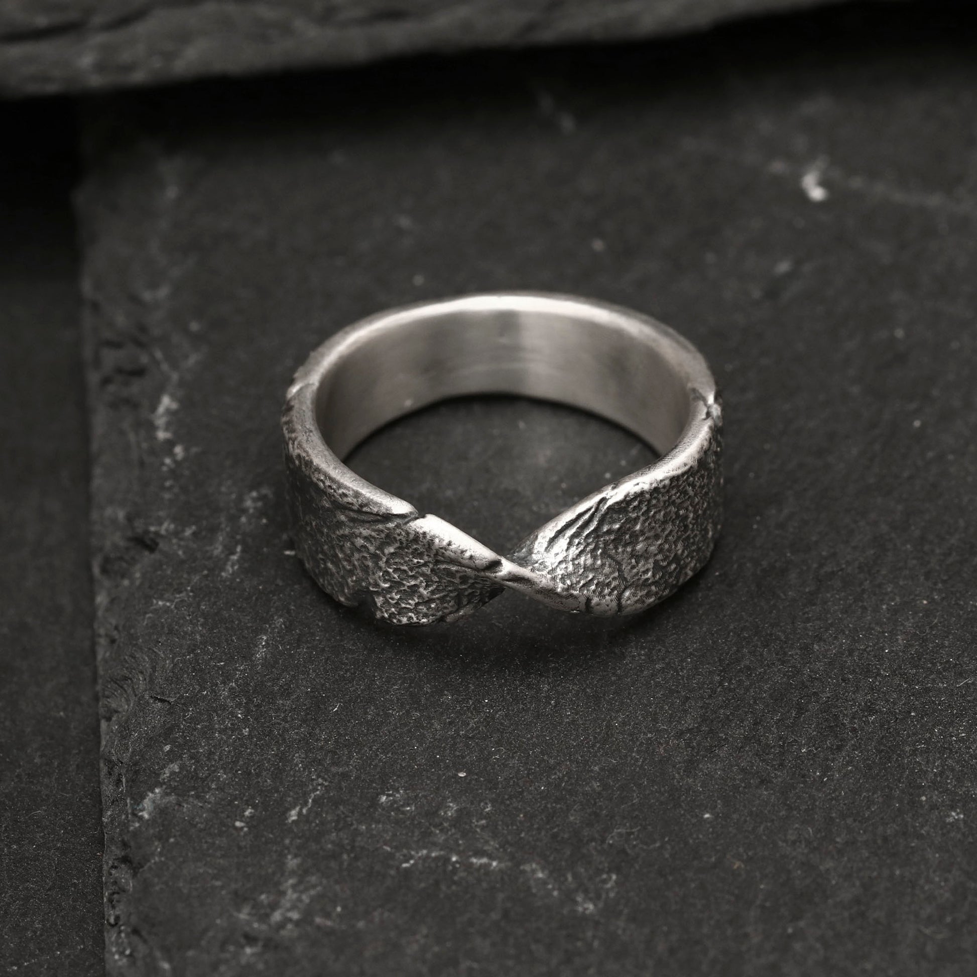- Möbius şeridi yüzük yorumunda kesintisiz tek yüzeyden oluşan ve dönmeyen formuyla yaşamın döngüselliğine ve iç içe geçmişliğine işaret eder. Yüzeyindeki kusurlar ve dokulu yapı, tüm yaşanmışlıkları ve hayatın bıraktığı izleri yansıtır."